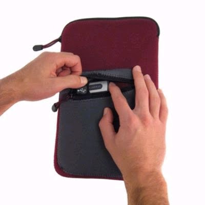 La fermeture éclair-autour de la gaine entoure complètement l'ordinateur, et peuvent être transportés dans un autre sac, ou de sa propre en utilisant les inclus, bandoulière amovible